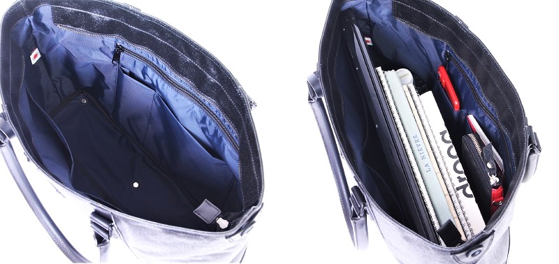 内側のカラーは汚れが目立ちにくく、中身の見えやすい人気のネイビーにしています。
