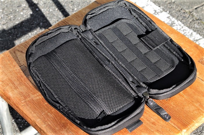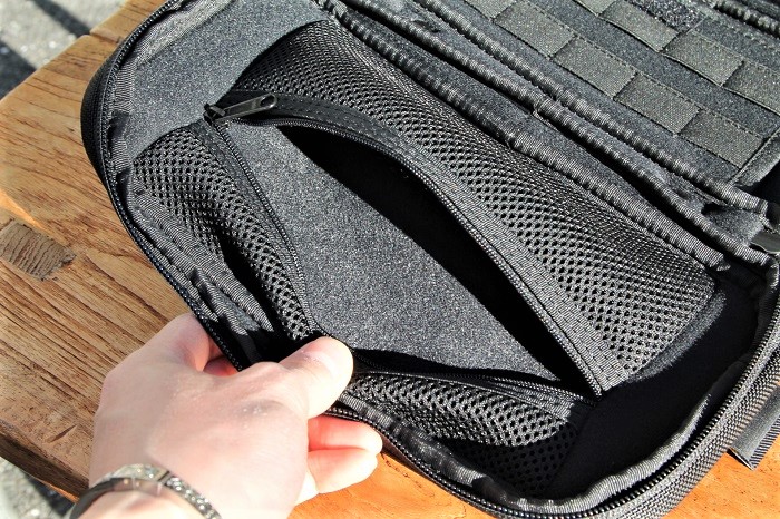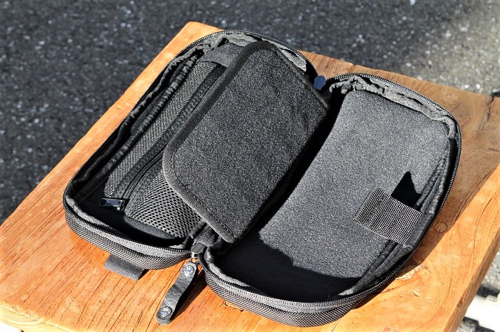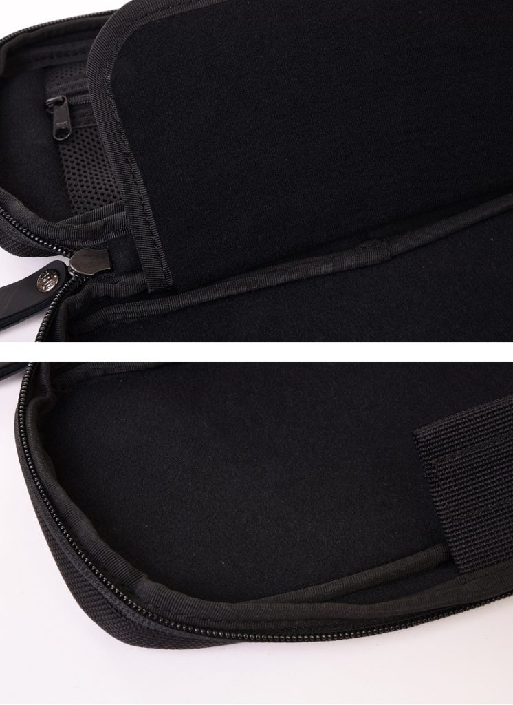 反対側の内側には、ファスナー付きポケット。こちらのポケット内側も緩衝材付きです。