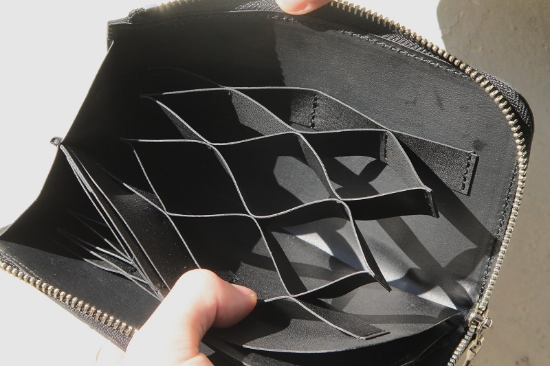 浅くする事で、ポケットの深くまで探すことなく、こちらもカード同様、一目見てどこに何があるかが分かり易いのが特徴です。