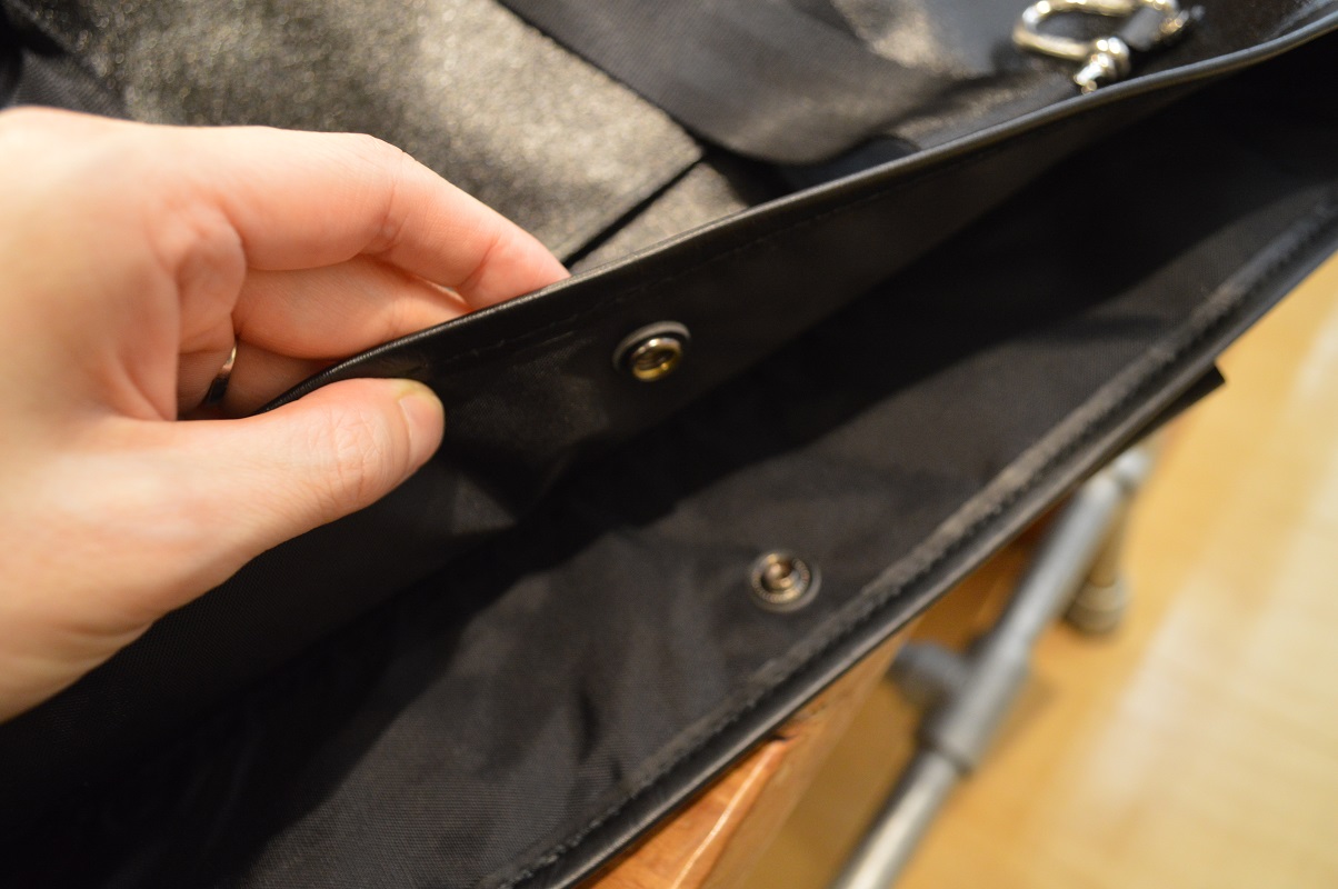 広い開口部はスナップボタン付属で、中が丸見えにならずに安心な仕様に。