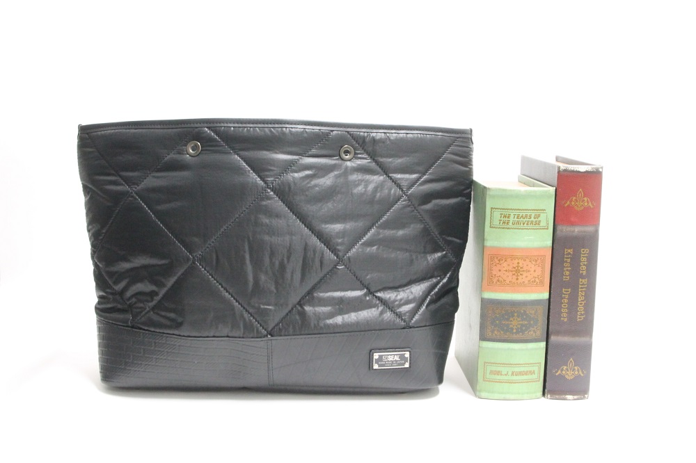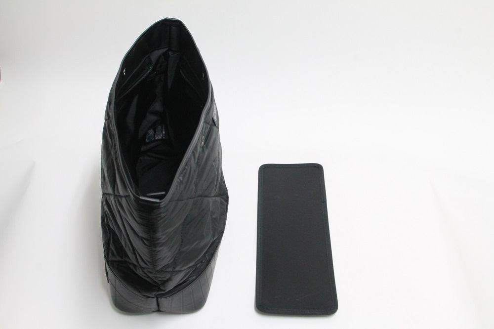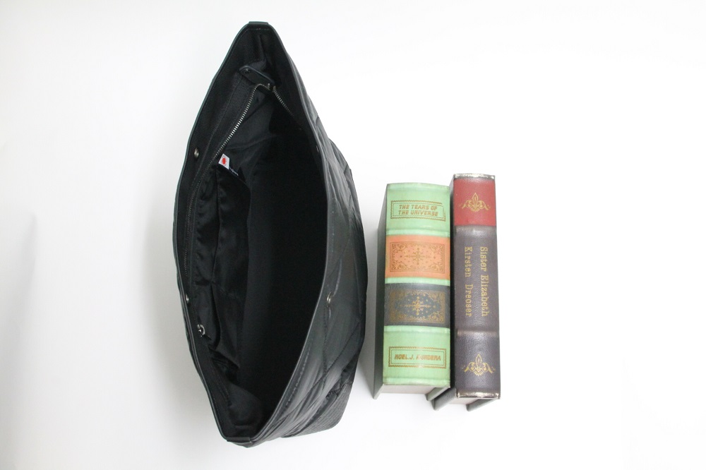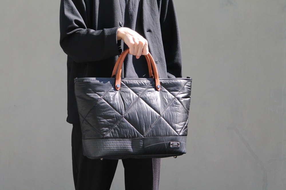タイヤらしい下から支えてくれる安定感は廃材から再利用されたバッグになっても健在です。