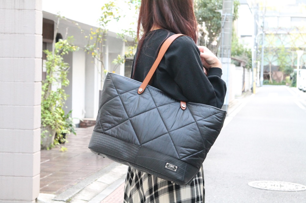 そして藤倉航装パラシュート素材ならではの「軽さ」「柔らかい印象」のあるバッグは女性の方にも気軽に使える素敵なトートバッグになっております。