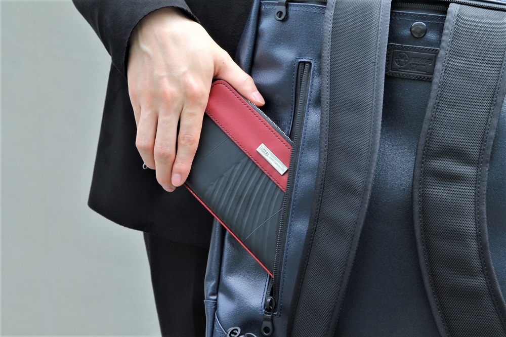 これにより背面ファスナーポケットに入れたアイテムの飛び出すのを防ぎ、より使い心地の良いものにしています。