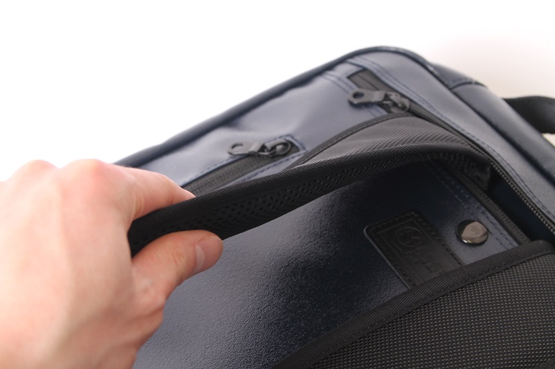 背面に新機能「ファスナ―ポケット」を追加した事で、サイド持ち手ハンドルを無くしました。
