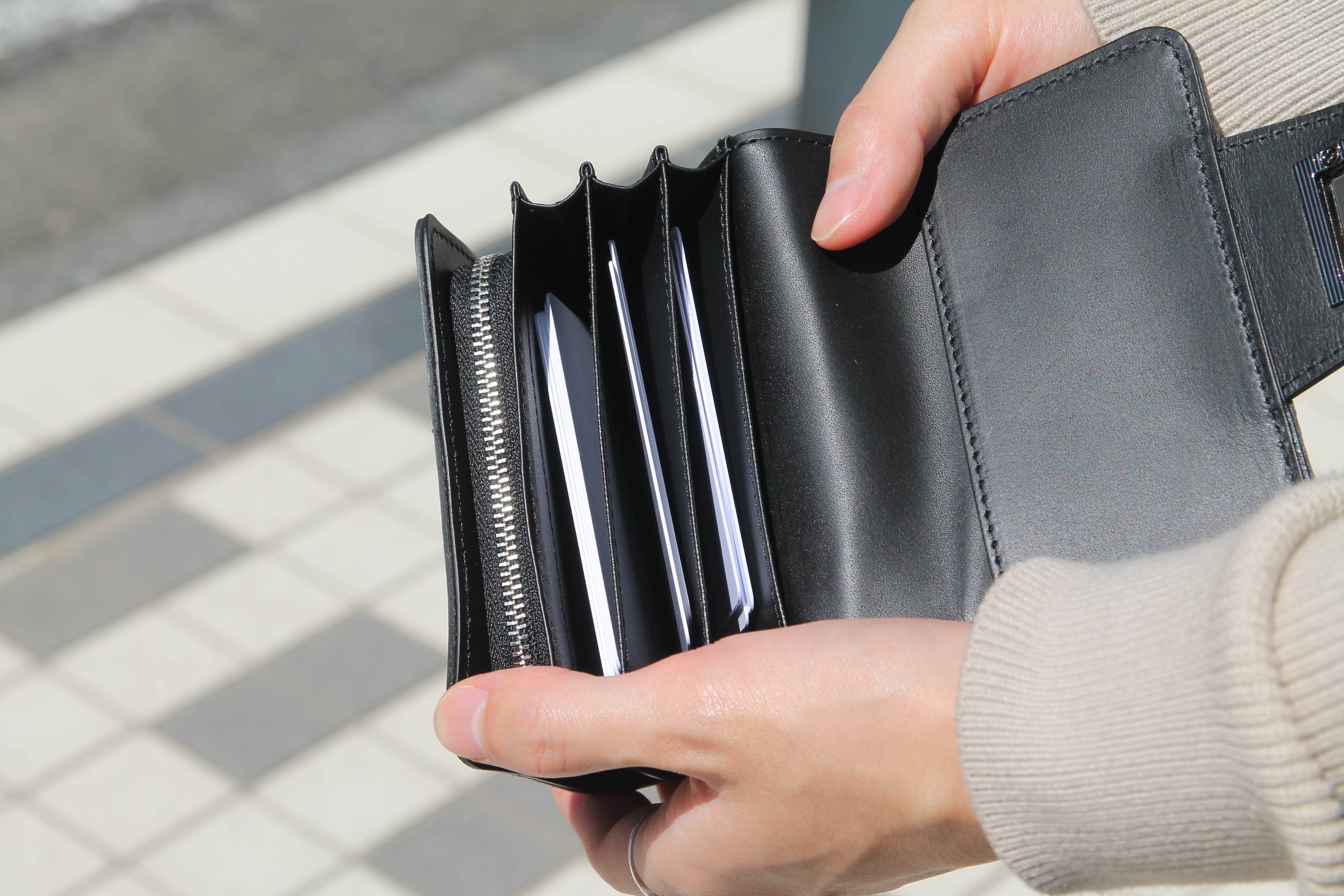 しっかりと確保されたマチ幅によりお財布に入れておきたいアイテムを問題なく収納可能です。