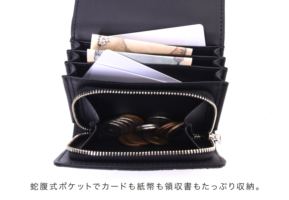 マチ幅やデザインは他のお財布にはない唯一無二な製品となっております。
