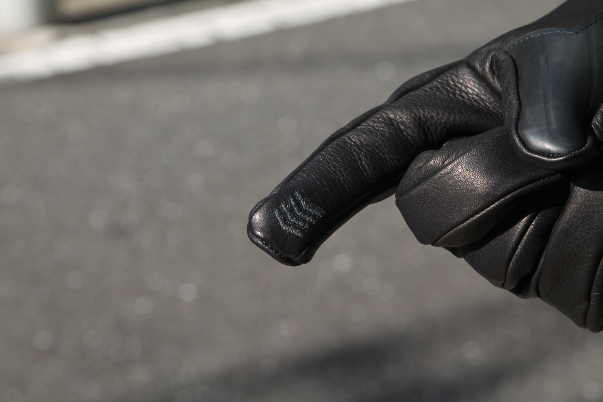 また人差し指部分には導電糸刺繍を採用したグローブですので、グローブを着用しながらスマホの操作も可能。