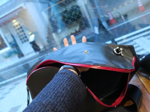 PS-141「ワンショルダーバッグ SPIRAL SLIM」¥11,880(税込) は内側にポケットが一切ない仕様になっていますので、小物を入れていただくのにちょうどよいお鞄です☆