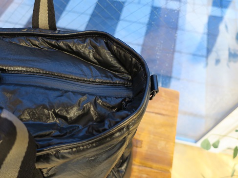 端から端まで止水ファスナーが閉まるので、雨の日も安心してお持ちいただけます。