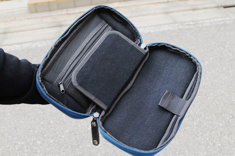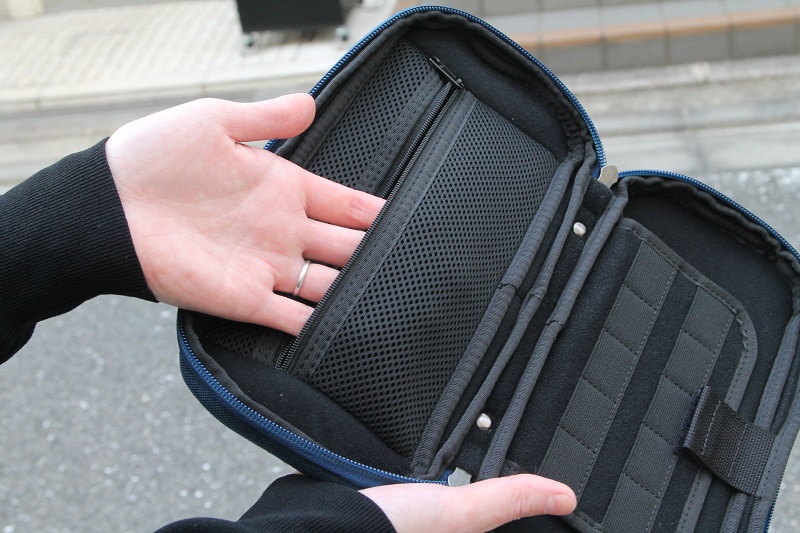 反対側の内側には、ファスナー付きポケット。こちらのポケット内側も緩衝材付きです。