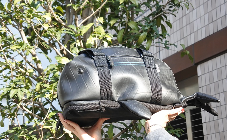 優雅に泳ぐクジラ。シャチよりも大らかな感じがボストンバッグの形状にピッタリですね!