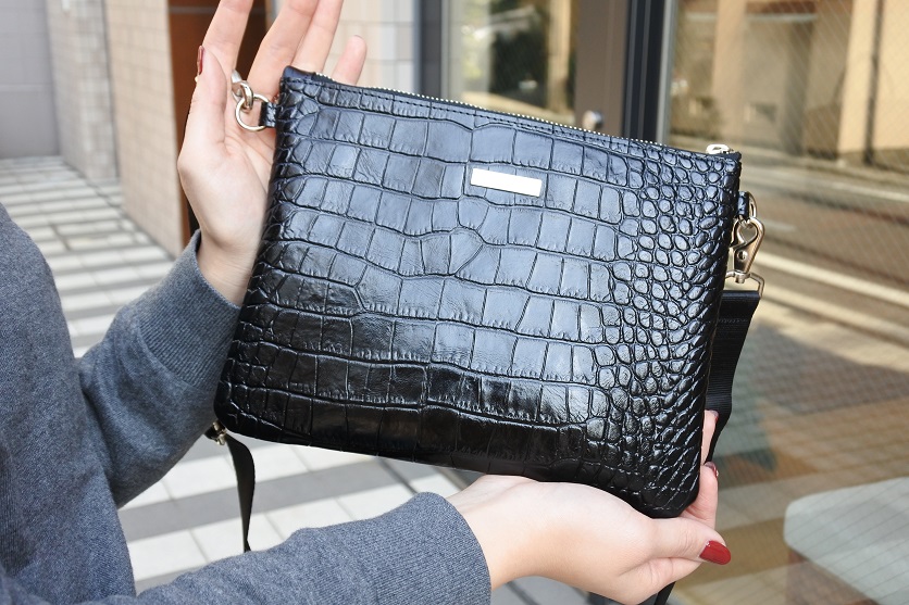 クロコ調レザーは重厚感があるのでビジネスシーンでもお使いいただけそうですね。