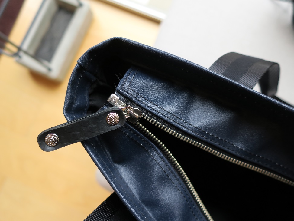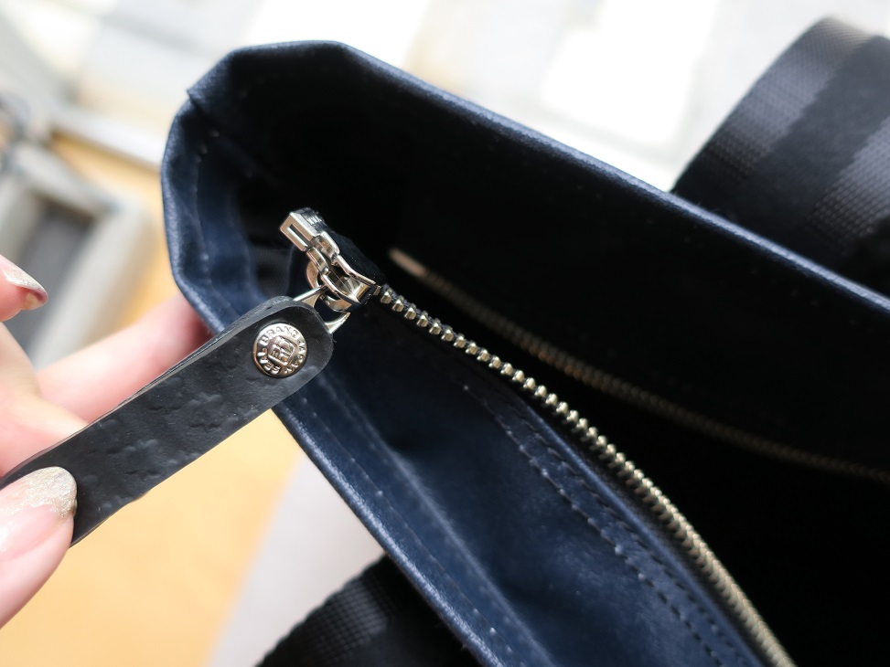 トートバッグには珍しいファスナー付きなので雨が降っても安心。