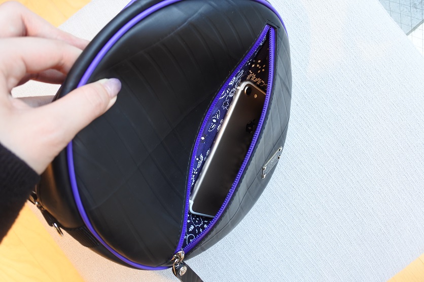 内側に携帯が入るポケット付きですが、外ポケットにいれてもOK!
