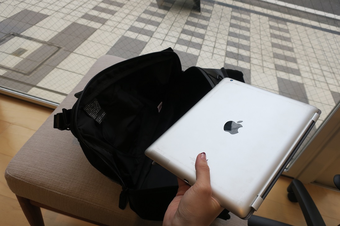 緩衝材つきのポケットもあるのでiPadがすっぽり。