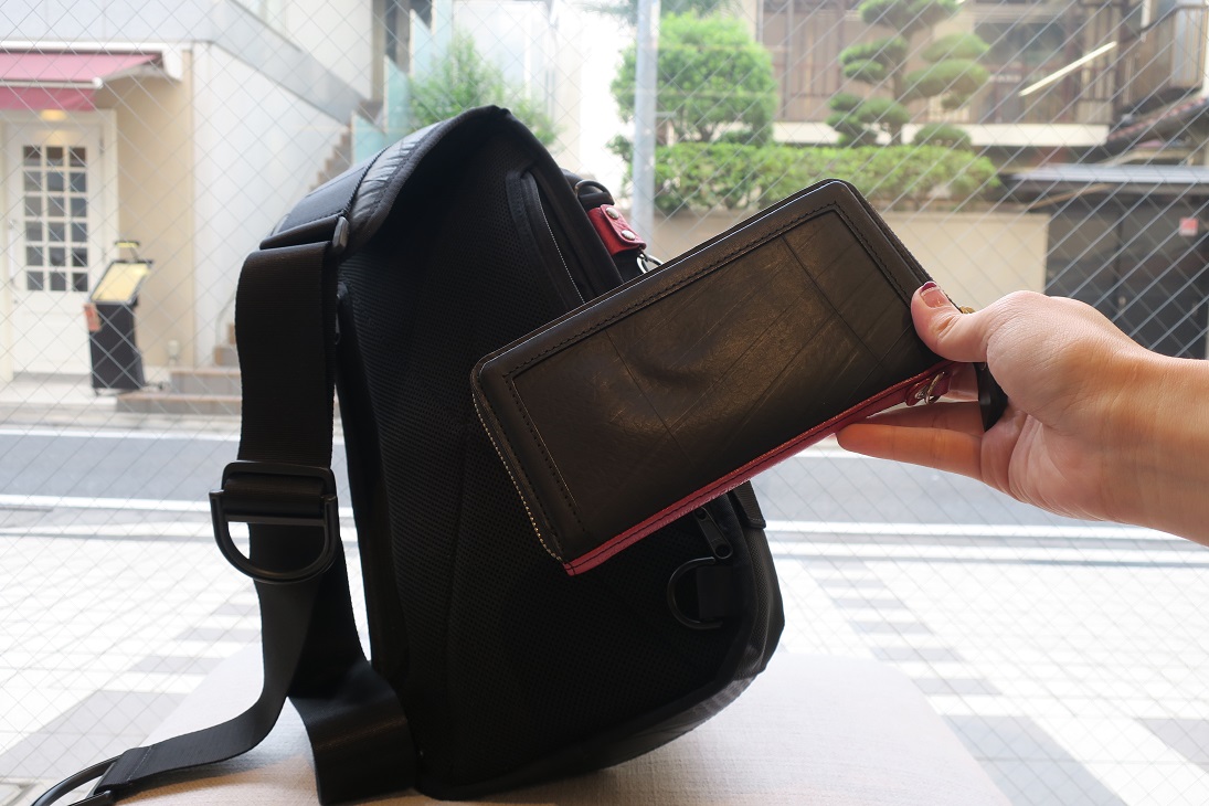背面ポケットも大きいのでロングウォレットが余裕で入っちゃいます。