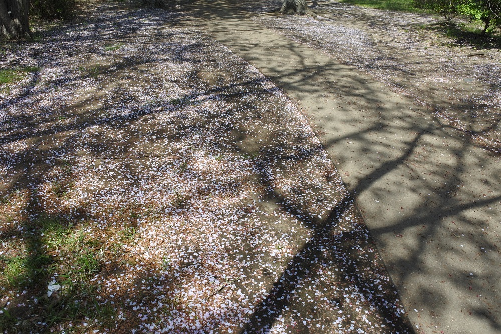 今年は桜をしっかり拝むことはできなかったですが、下に落ちておるピンクも綺麗でした。