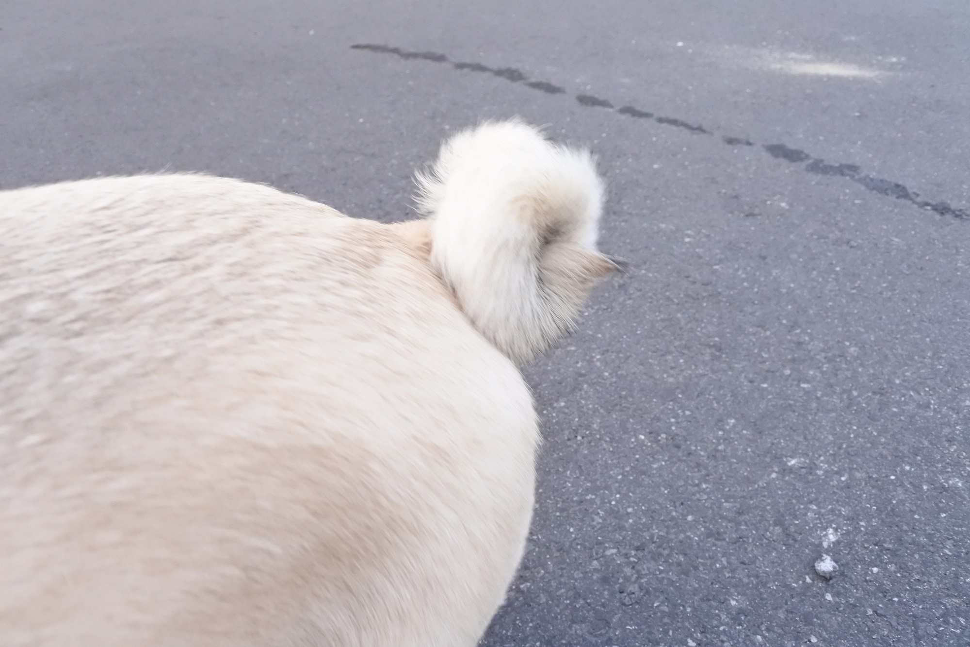 このくるりんとした尻尾がフリフリしてるのを見ると癒されますね。