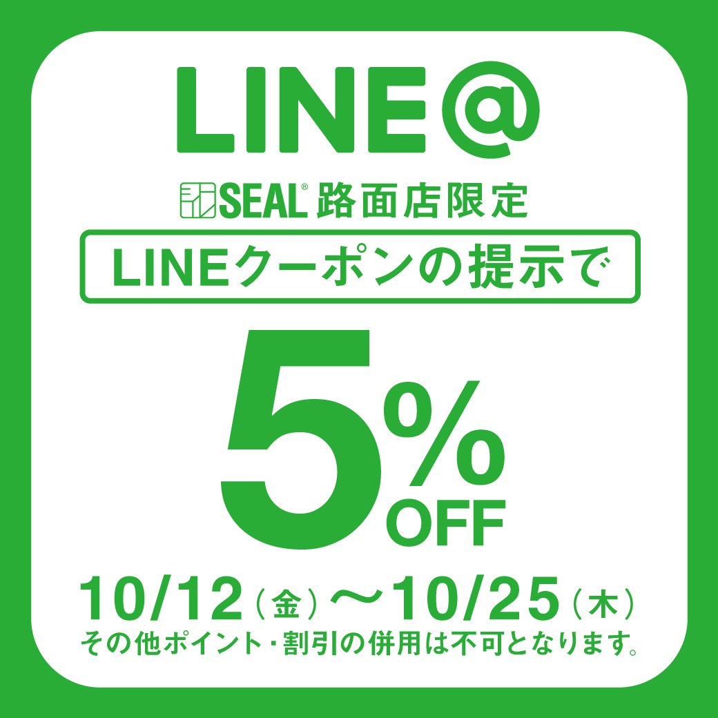 現在開催中のLINEクーポンご提示で5%OFFのイベント。