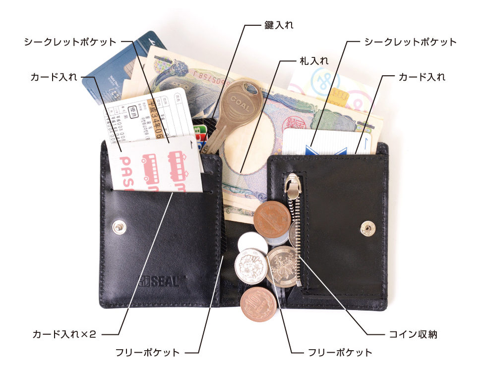なのにカギの収納が出来たり、シークレットポケットがあったりと