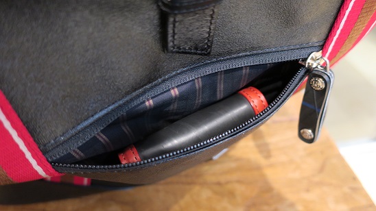 雨が降ったり、人混みで防犯面が気になるときはファスナーをシャッと