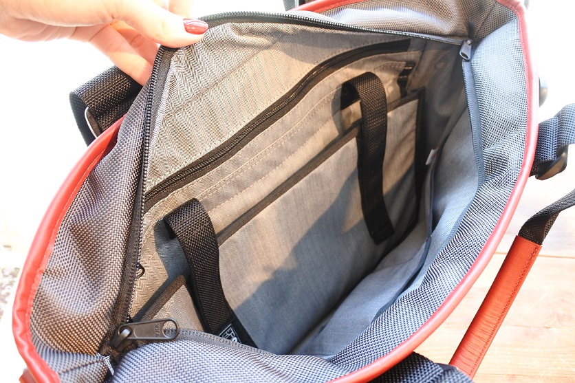 鞄の内側はヘリンボン生地を使用。