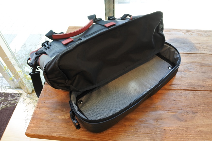 キャリーケースにも固定できる構造ですが、そのベルトを外して