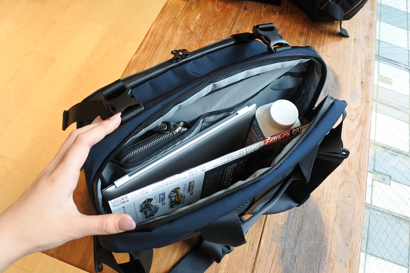 メイン収納はお財布、雑誌、iPad、500mlボトルが入ってもまだまだ入れられます。