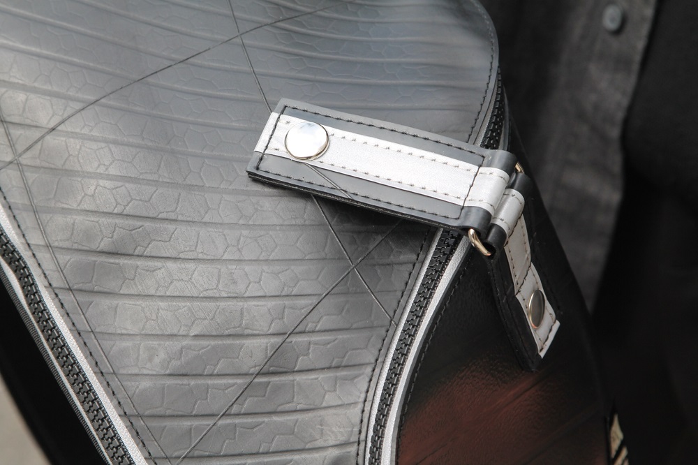 ベルト部分はタイヤチューブをベースに「再帰反射フィルム」を付ける事で、