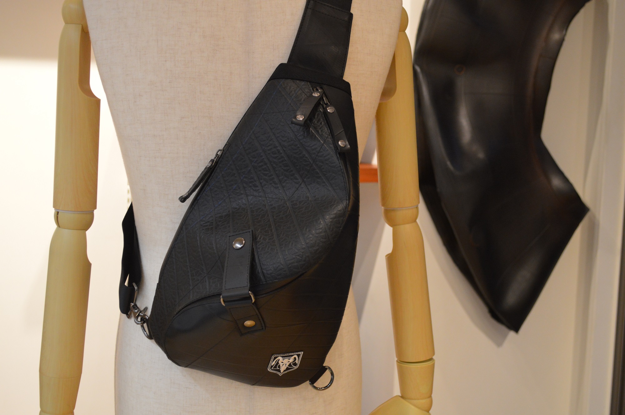 こちらも全体がブラックで落ち着いた雰囲気。レザーも使用したアイテムなのでシックなコーディネートも出来ちゃいますね♪