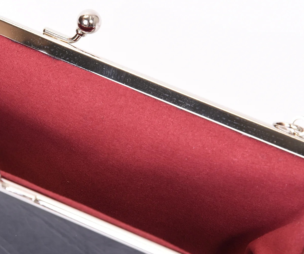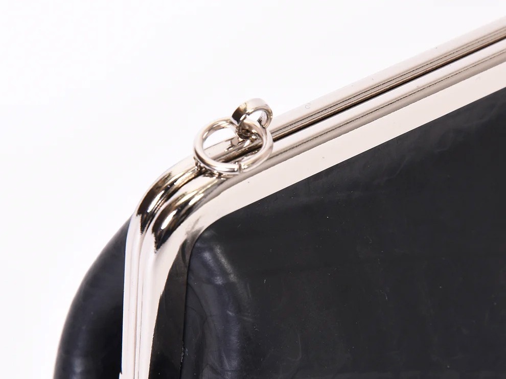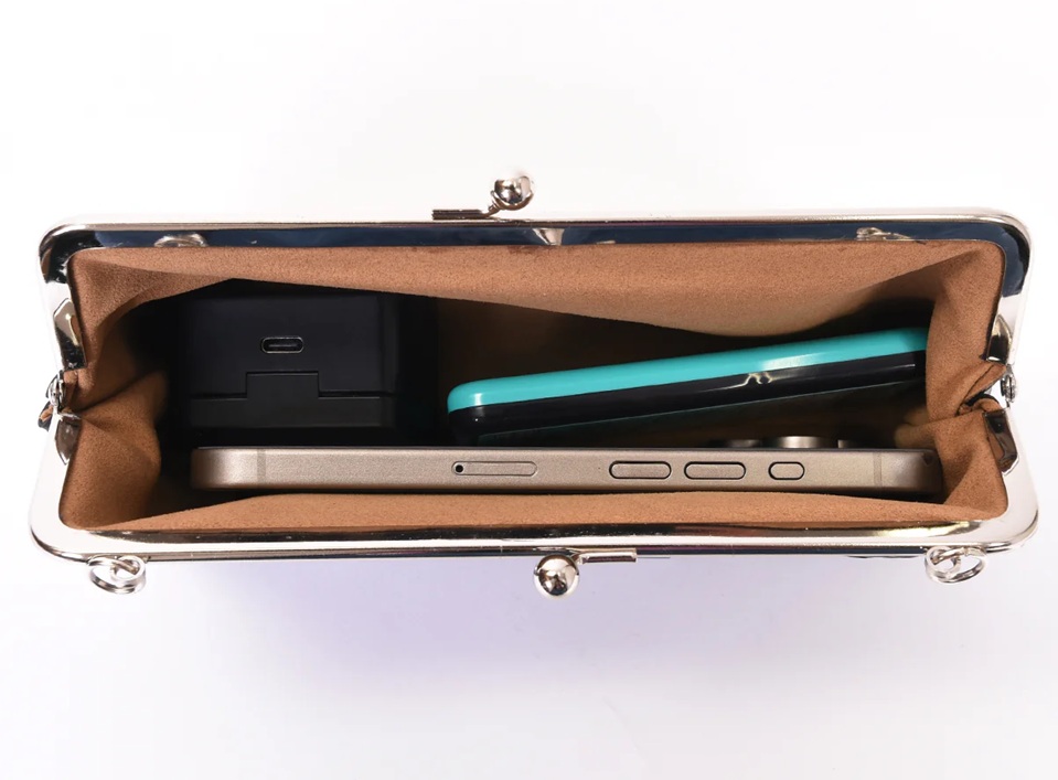 ②開口部はがま口を採用し、シルバー金具でアクセントをプラスしました。開閉がスムーズです。