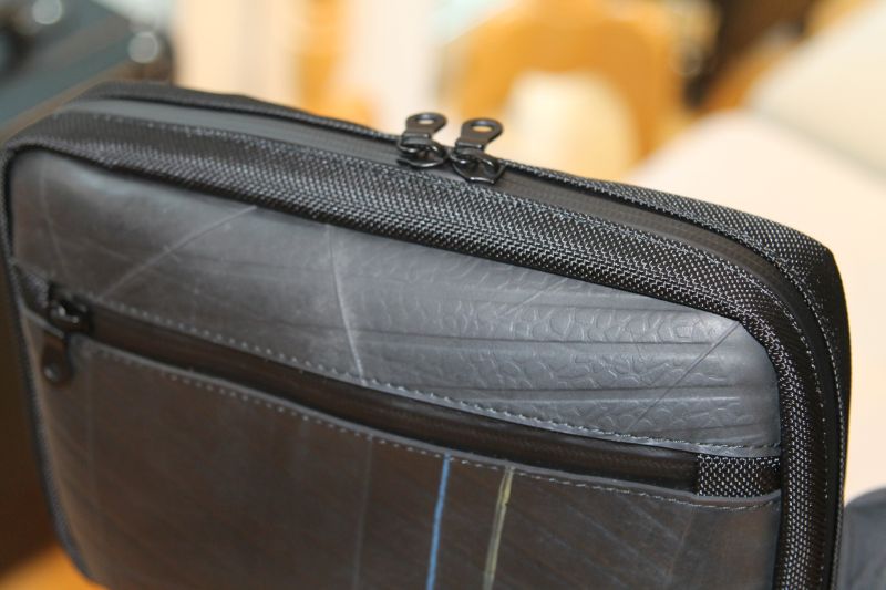 ・外装の正面ポケット:斜めファスナーを横にし、ポケットサイズをup