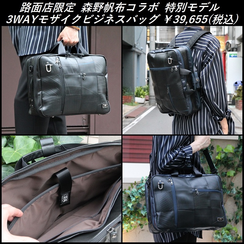 路面店限定モデル 森野帆布コラボ 3WAYモザイクビジネスバッグ