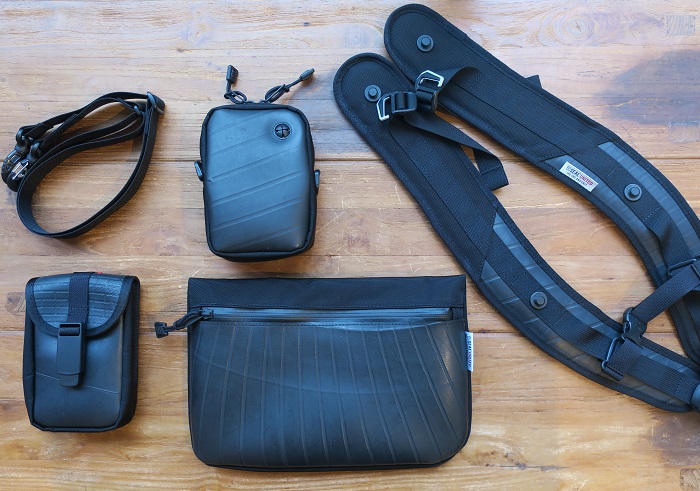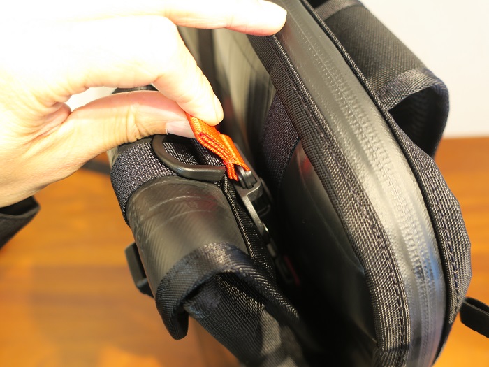 バッグのフロントにポーチ、サコッシュを取り付けたり・・・