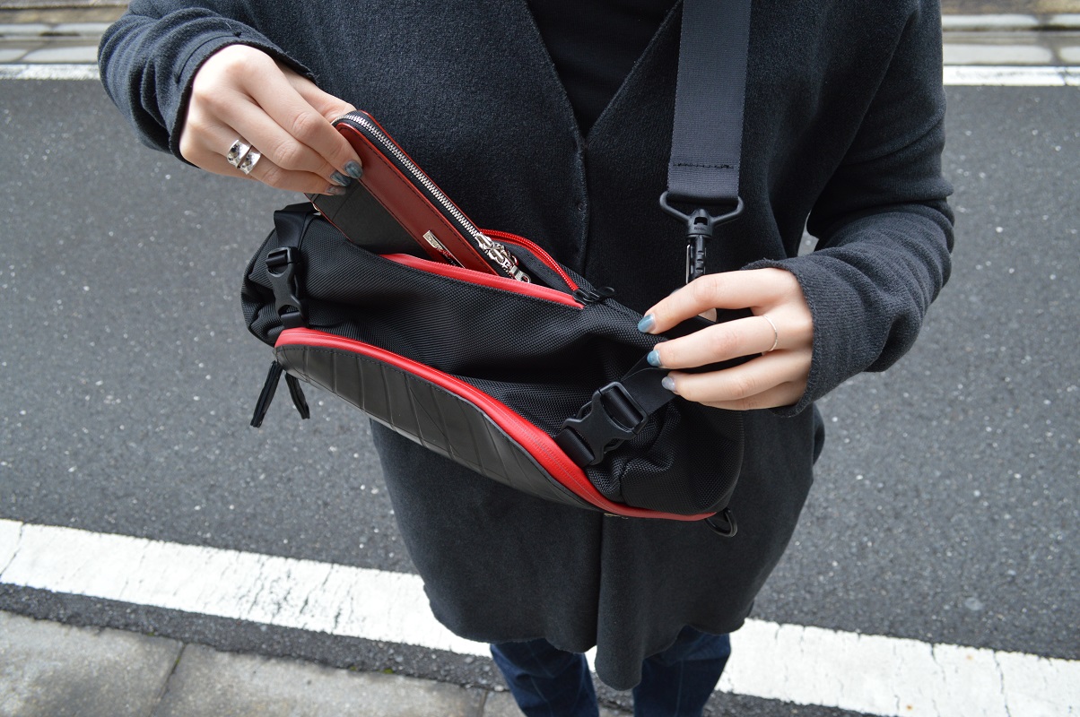 左ショルダーの方はサイドのファスナーからお財布を取り出してスムーズに。