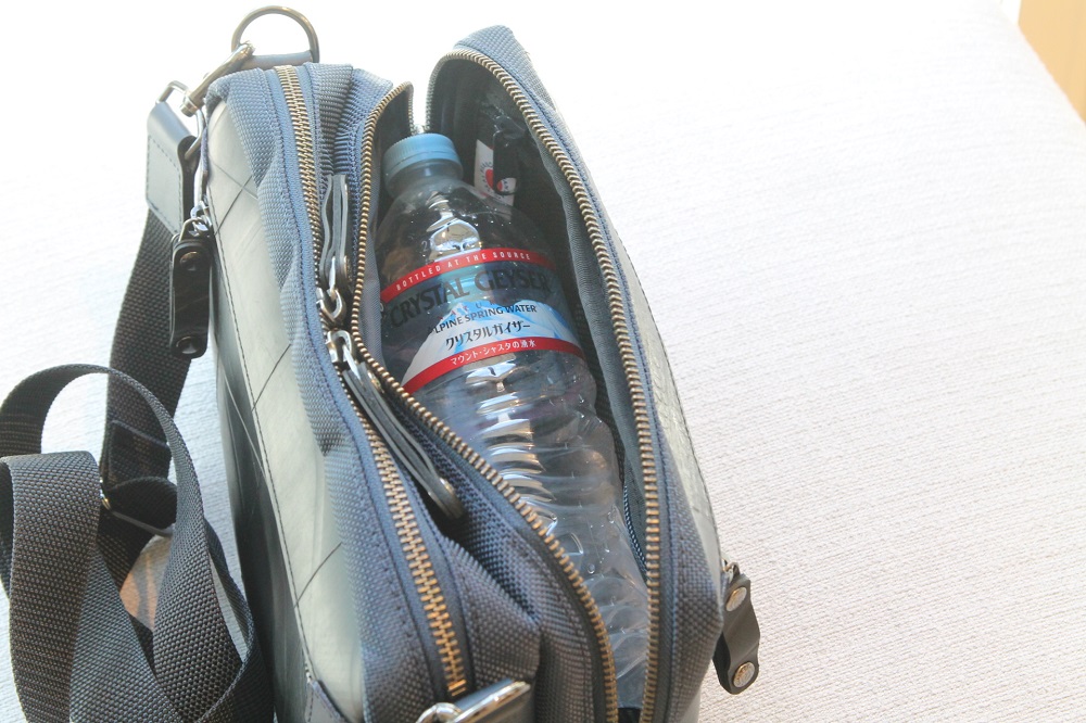 コンパクトな印象のあるバッグではありますが、500mlペットボトル程度であれば問題なく入るサイズ感があります。