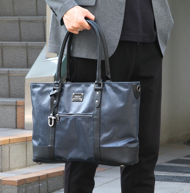 トートバッグは、ビジネスシーンから休日のカジュアルな装いまで、色々なスタイルにも馴染む頼れるファッションアイテムです。