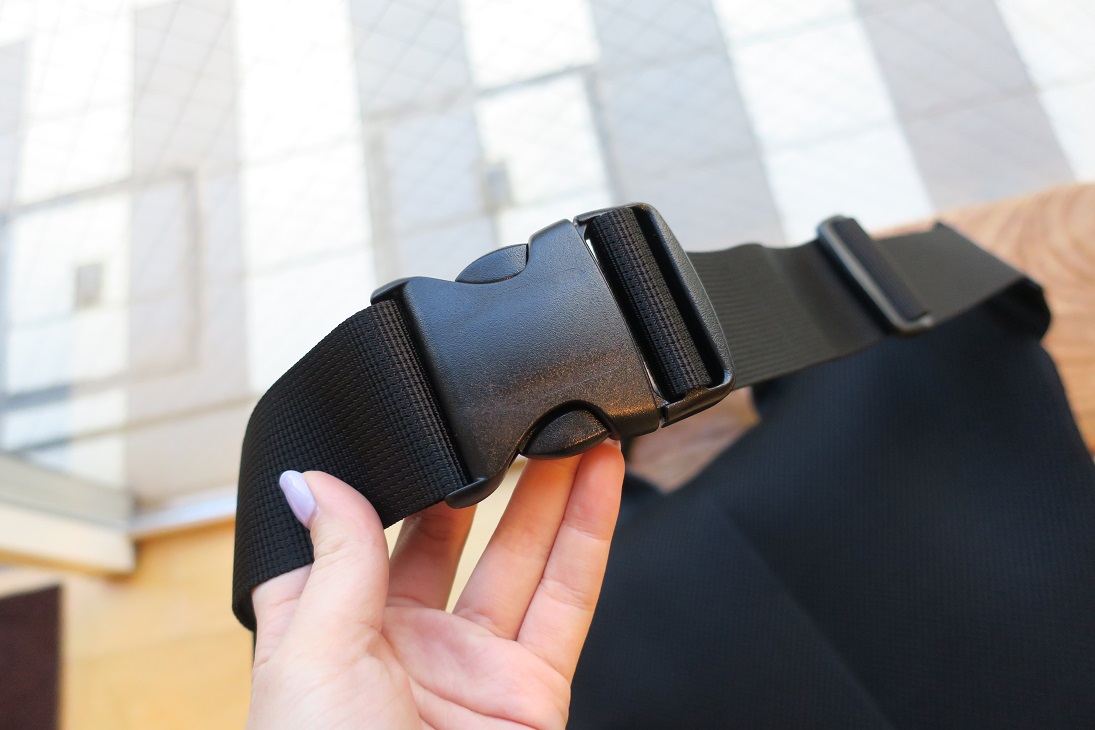 安定感あるベルトの太さと、バックル付きのため着脱が簡単なところ。