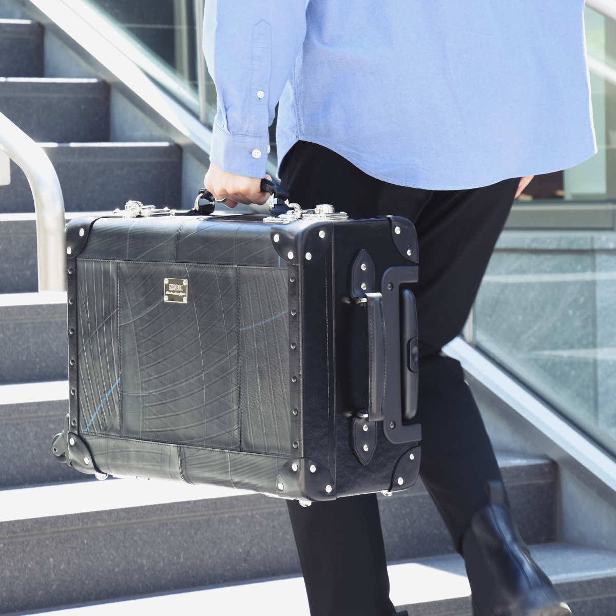 高品質な鞄を製造する豊岡の職人により作られた純国産のタイヤチューブを使用したトロリーケース。