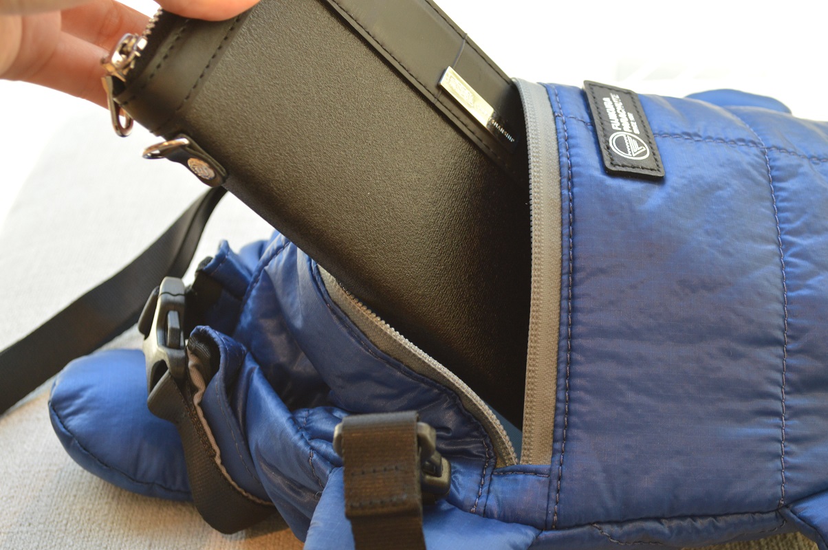 上を開いて荷物を取り出す事も出来ますが、背面のファスナーからもアクセス可能!