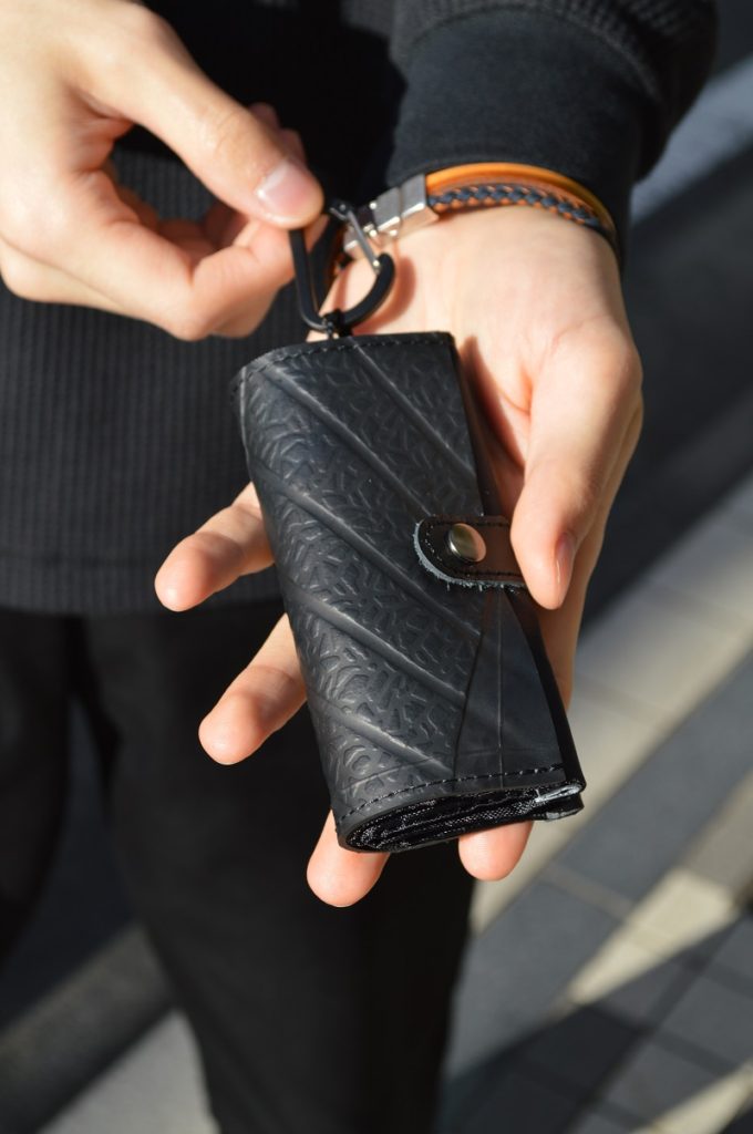 カラビナ付属なので、どこにでも引っ掛けられますね。