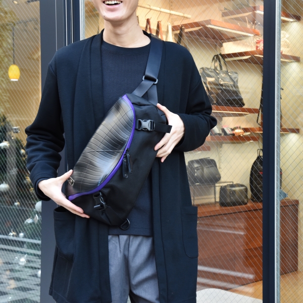 こちらのワンショルダーバッグ、とくにオススメしたいのが表参道本店限定カラーのパープルです。