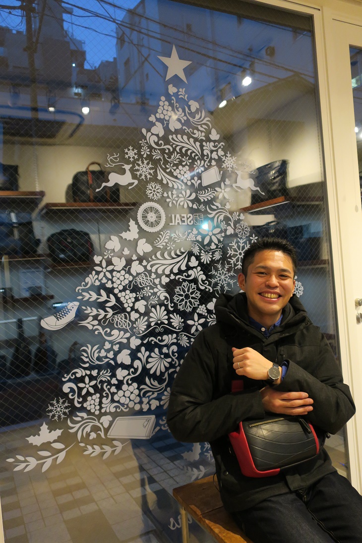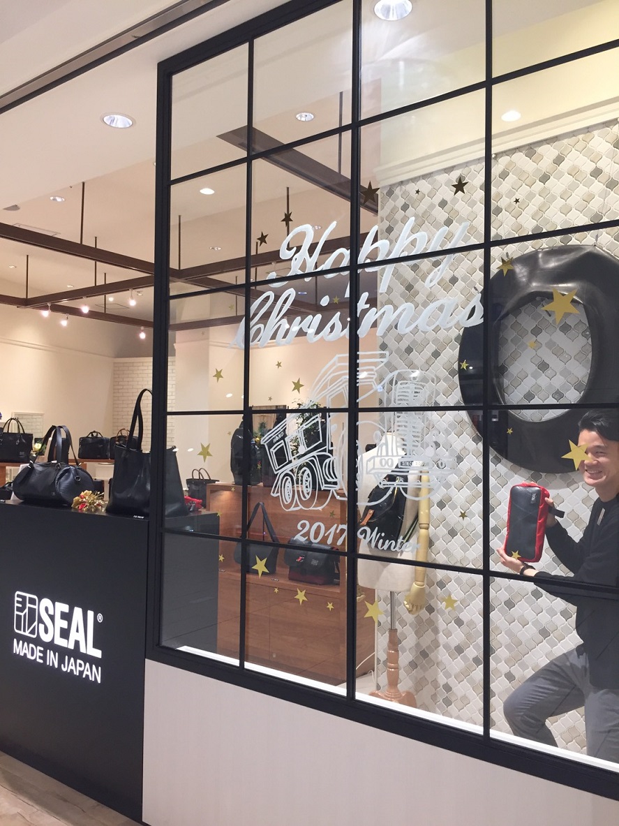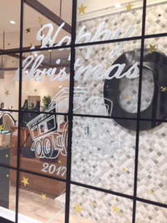 今回クリスマスのディスプレイとして窓に大きなツリーのカッティングシールを貼りました!