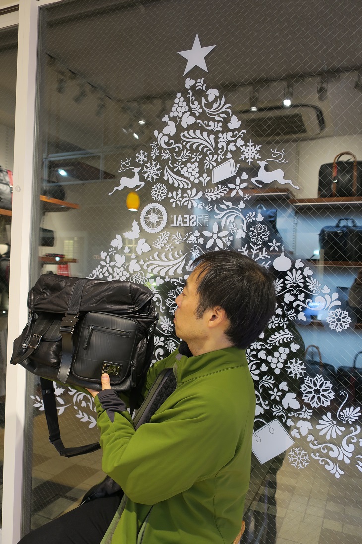 今回クリスマスのディスプレイとして窓に大きなツリーのカッティングシールを貼りました!