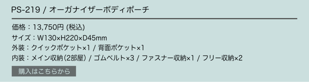 これだけ入れば十分なひとも多いはず。内装のゴムベルトがついているのはこのアイテムだけなので
