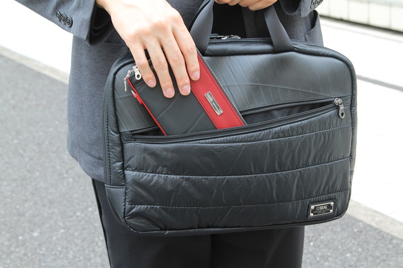 ある程度のお荷物でしたら問題なく収納出来るサイズですが、しっかりとビジネスバッグなどには収まる大きさ。