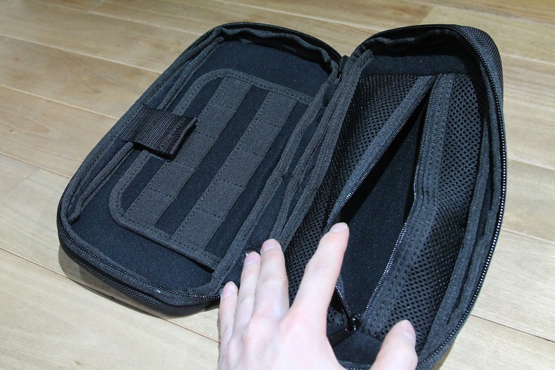 反対側の内側には、ファスナー付きポケット。こちらのポケット内側も緩衝材付きです。