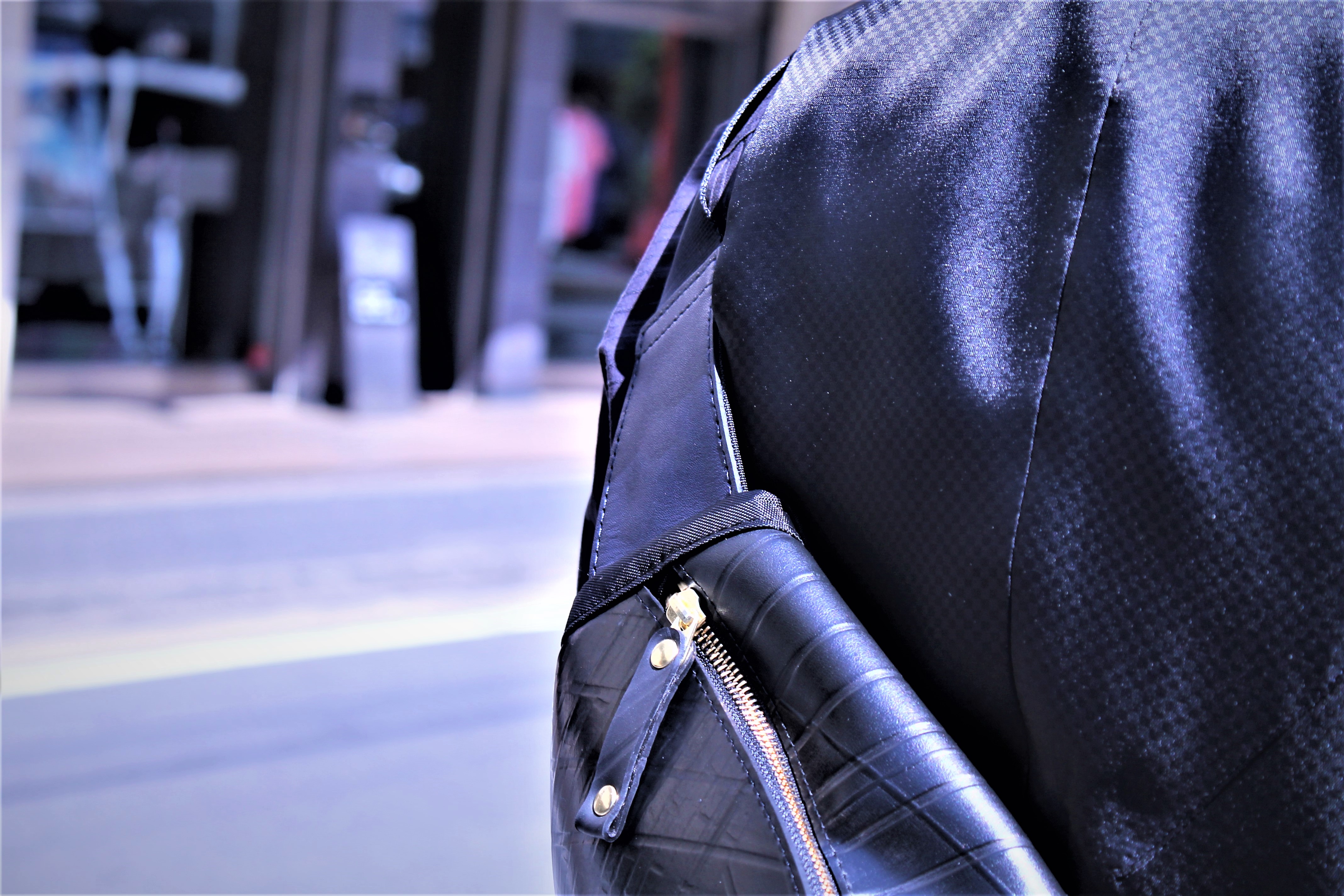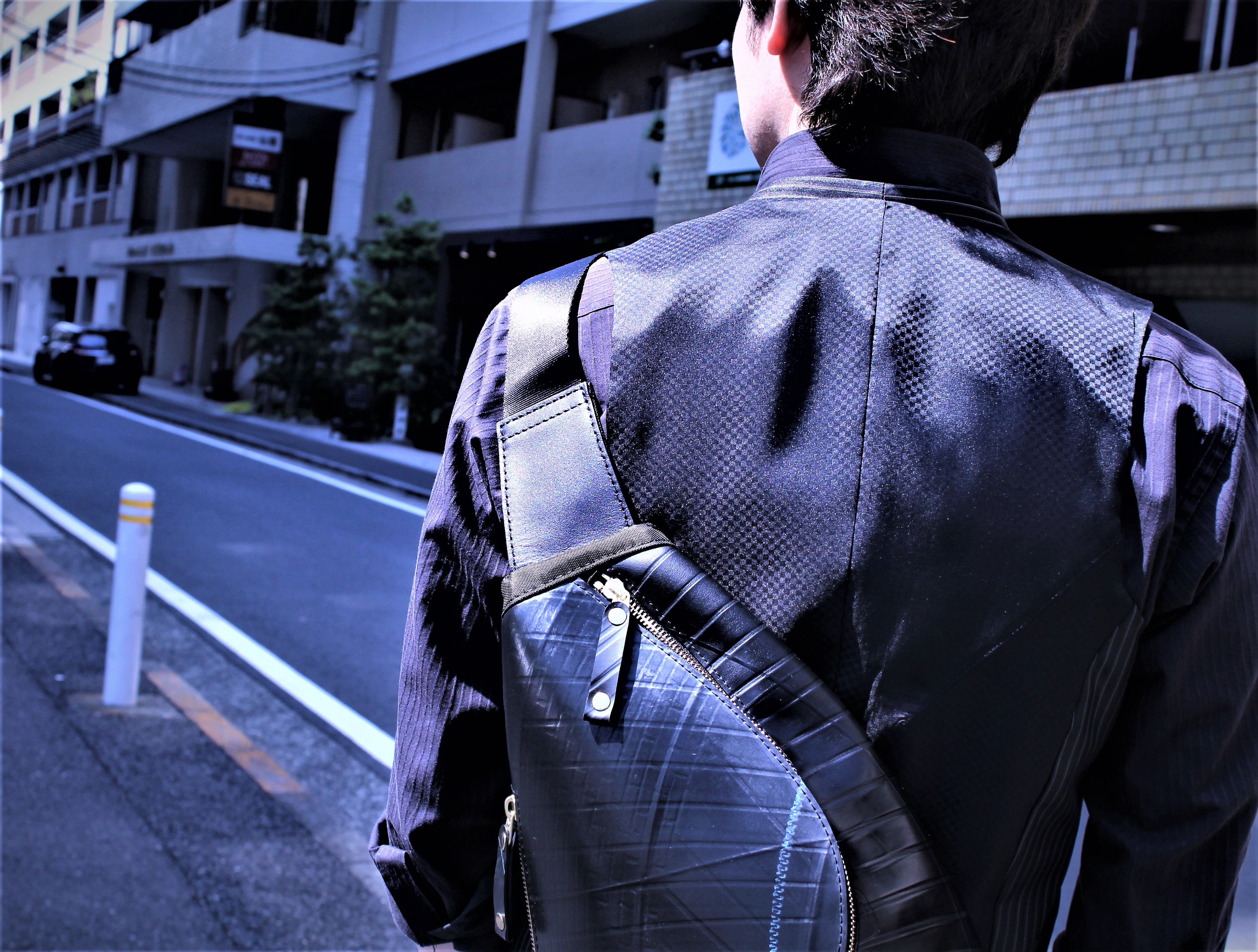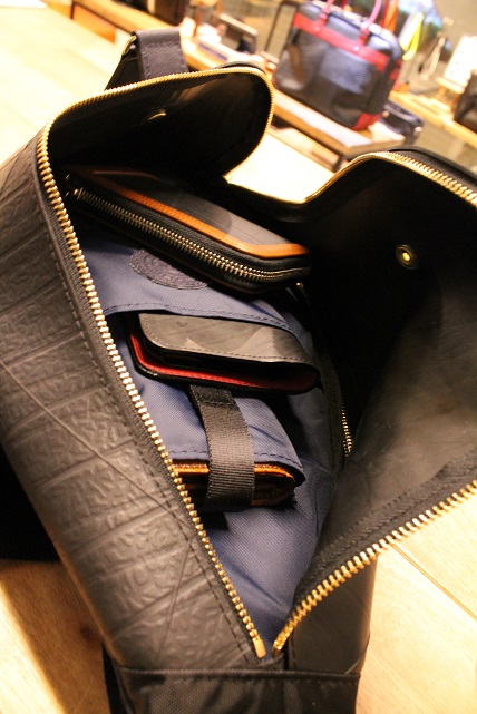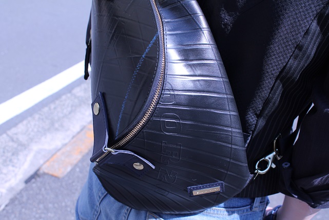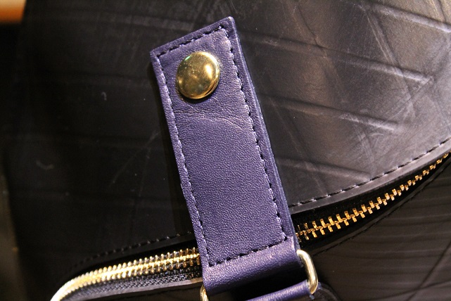 なんと、帆布をつかわずにタイヤチューブとレザーで出来ています!
