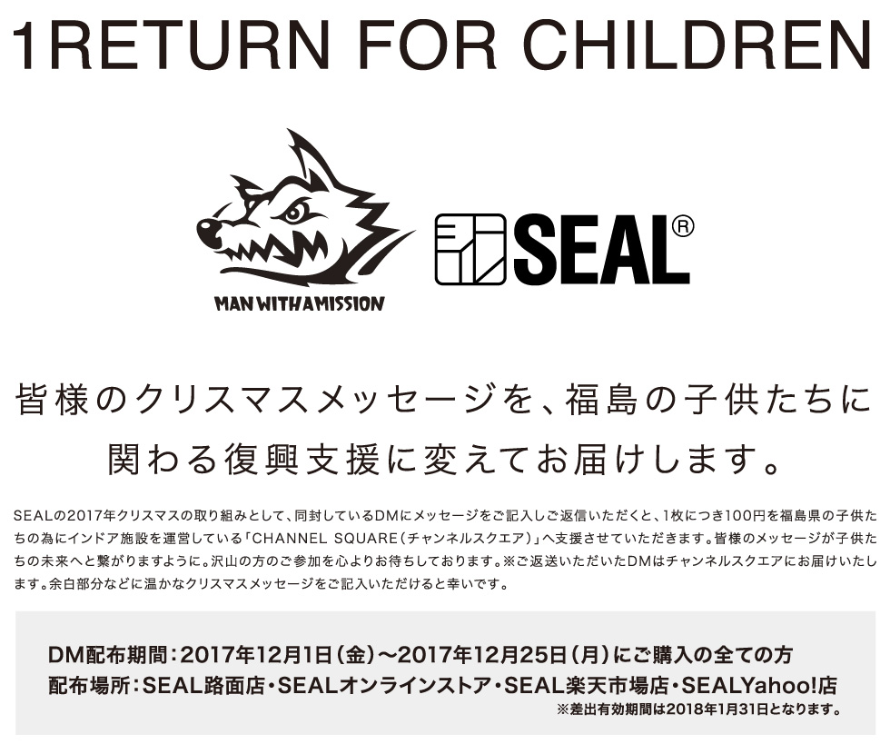 MAN WITH A MISSION×SEAL CHIRISTMAS EVENTS ! ONE RETURN FOR CHILDREN !