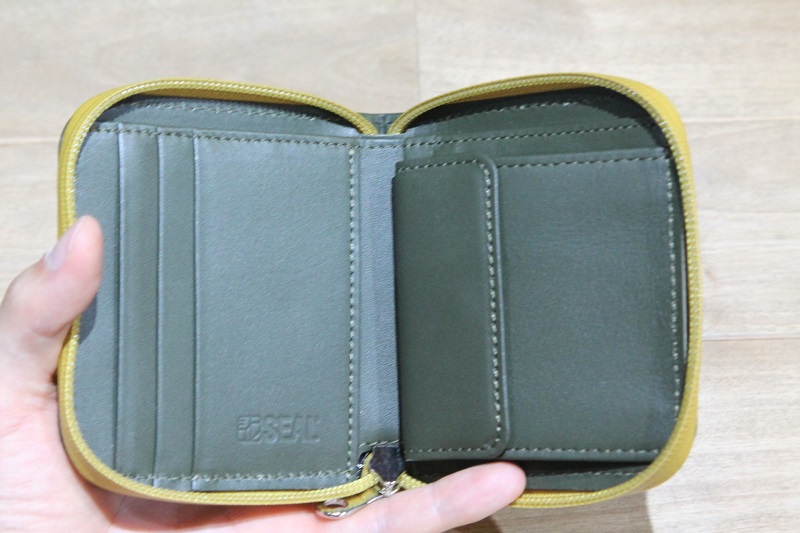 二つ折りお財布内部はカードポケットや小銭入れなどがあるシンプルな作り。